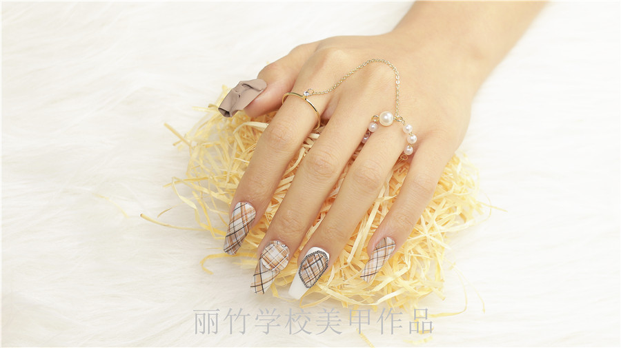 格紋美甲,麗竹學(xué)校美甲班作品分享