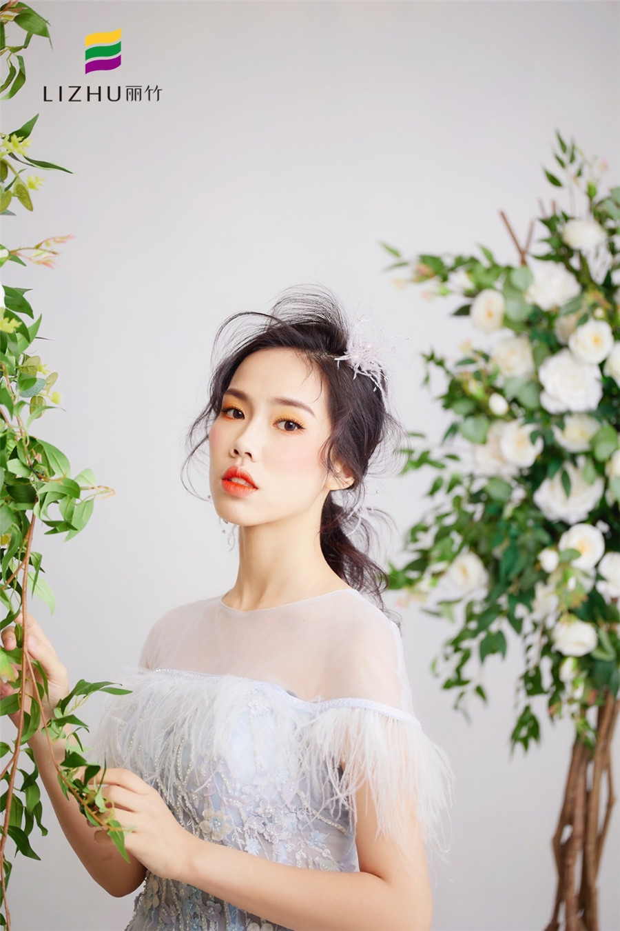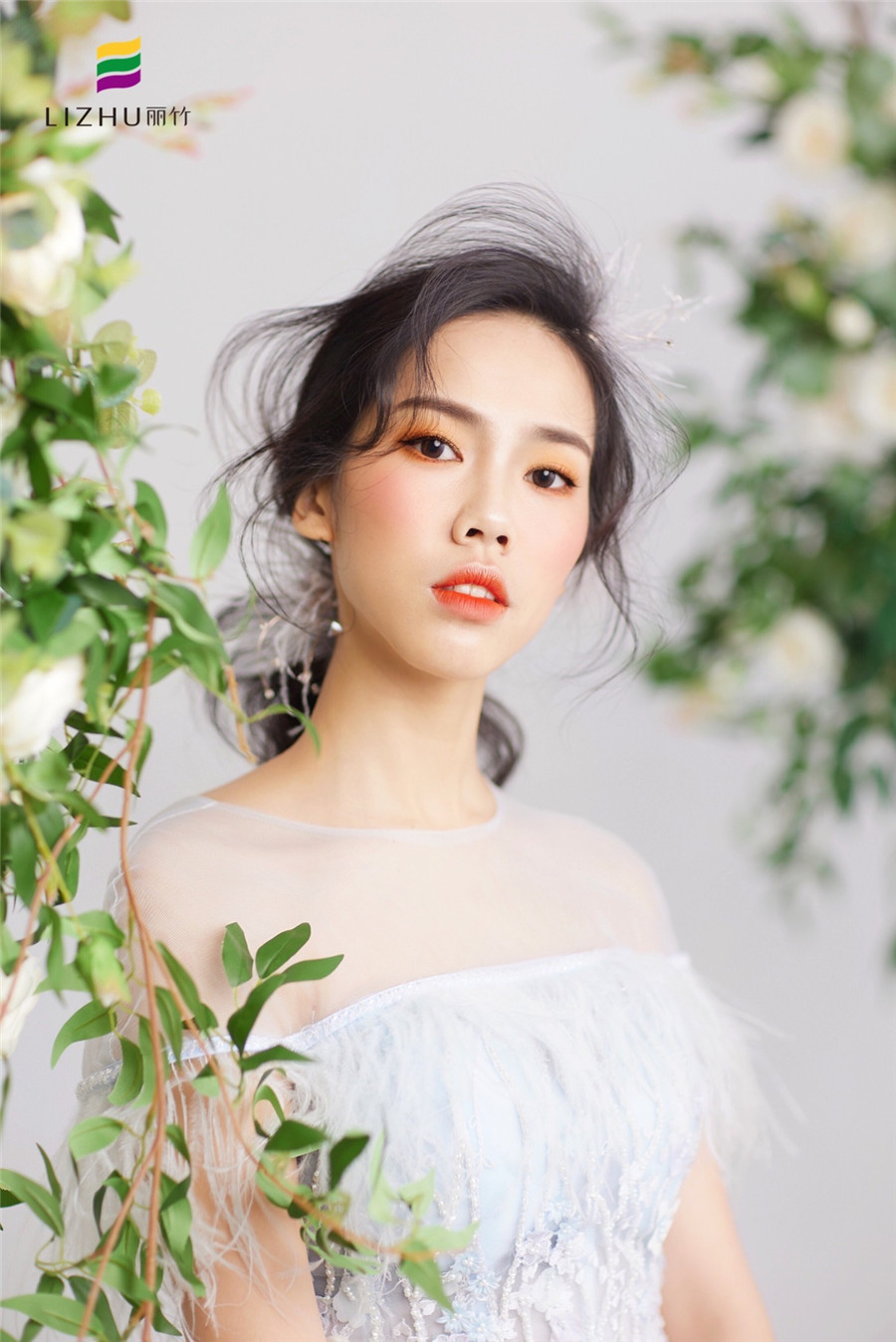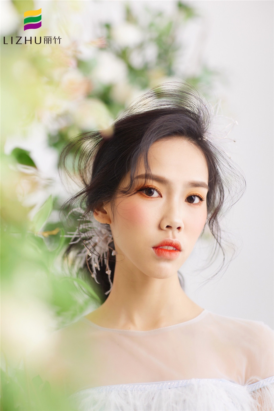 廣西化妝學校作品(麗竹彩妝學校):抽絲紋理新娘造型:靈動隨意的抽絲盤發(fā),簡單干凈自然的妝容,優(yōu)雅中散發(fā)恬靜與美好,打造出清新嬌俏的感覺。