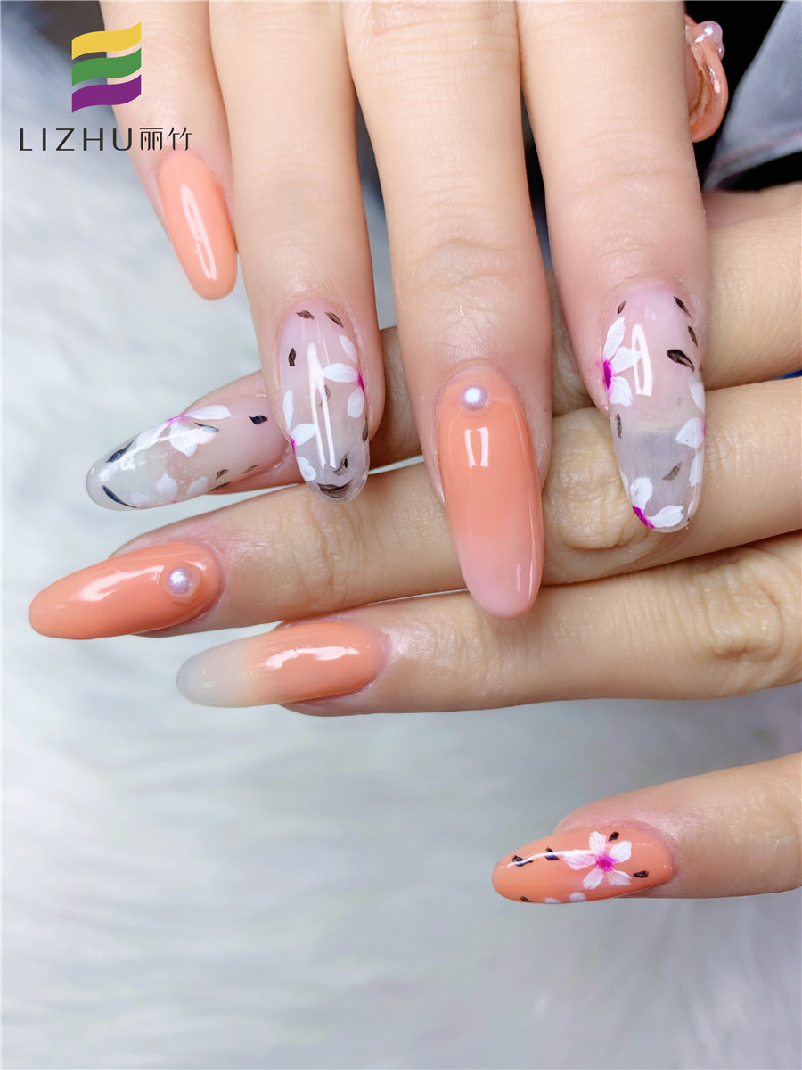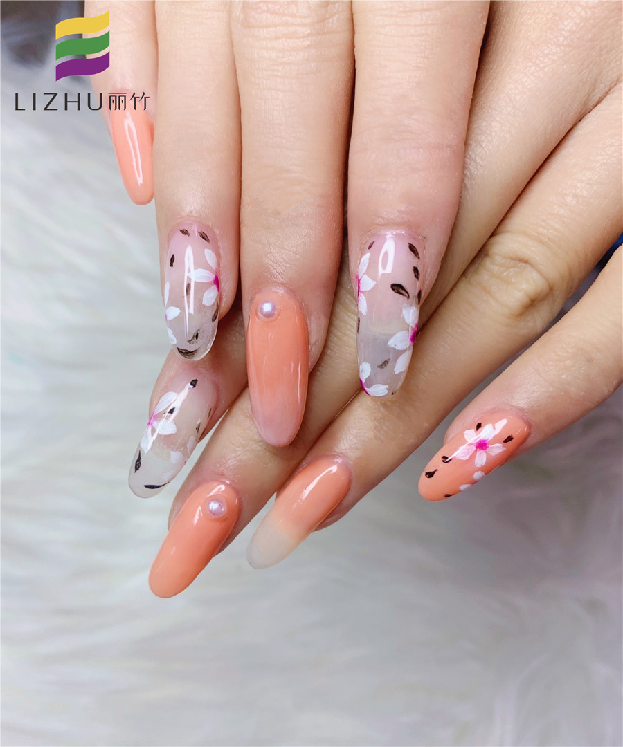 南寧哪里可以學彩繪美甲?請看麗竹美甲學校-春日桃花彩繪美甲(三)