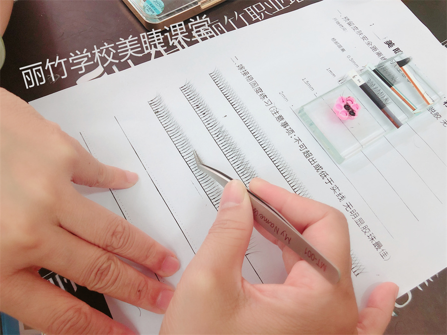 紙上嫁接睫毛,南寧美甲美睫學(xué)校學(xué)員練習(xí)