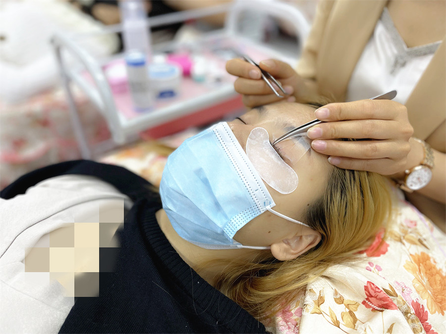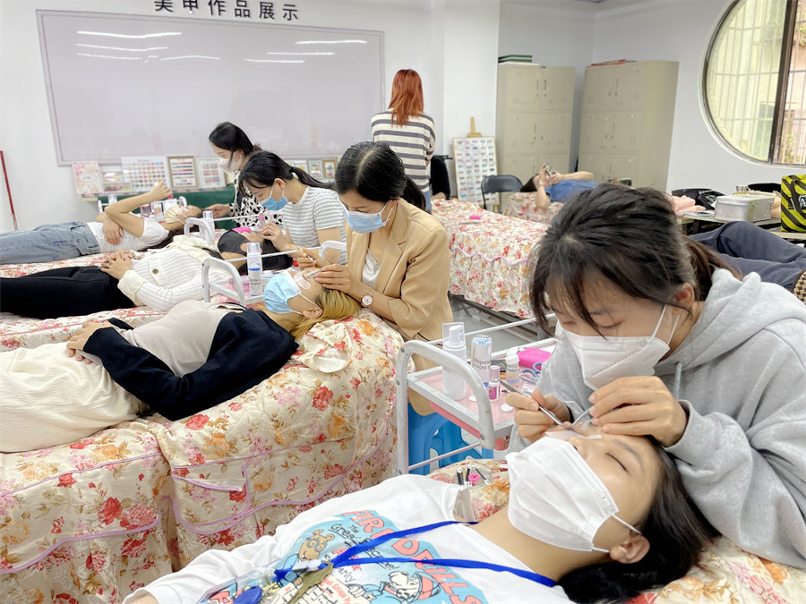 南寧學(xué)嫁接睫毛技術(shù)-麗竹美睫培訓(xùn)班學(xué)員進(jìn)行課堂練習(xí)