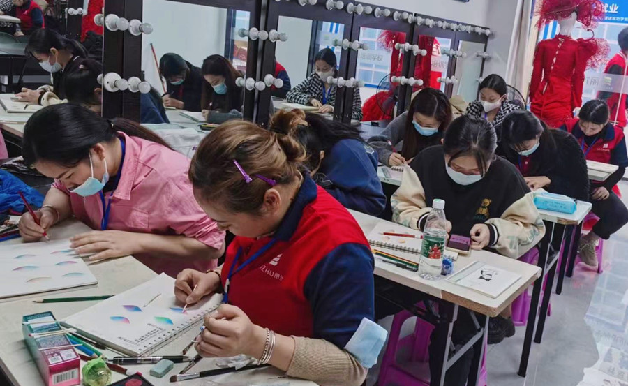 南寧化妝正規(guī)專業(yè)學校-學員正在進行眼影紙上繪畫練習