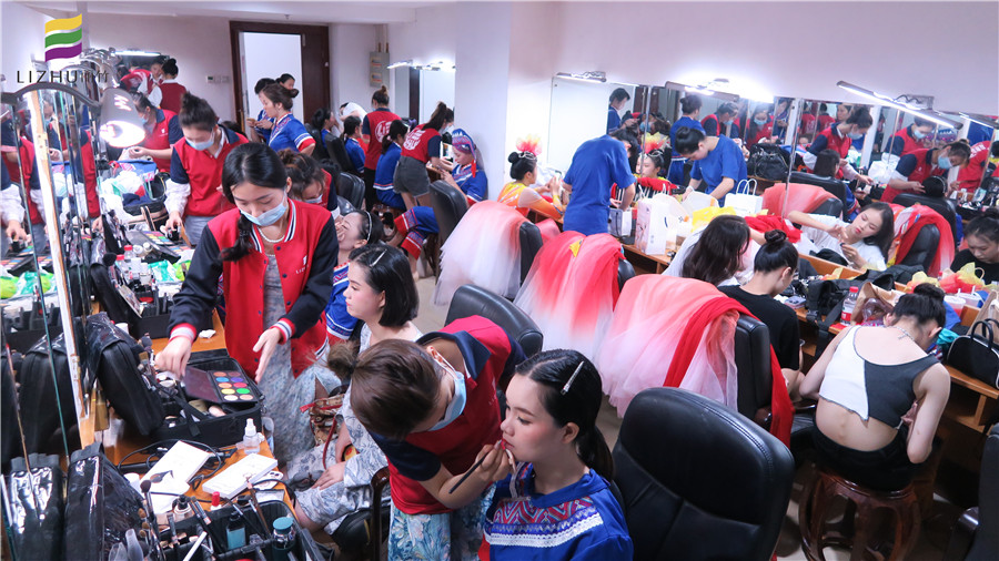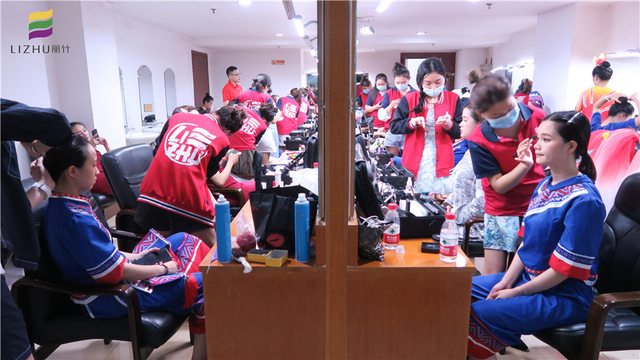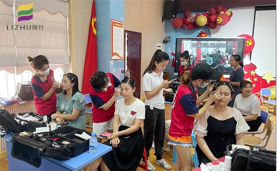 6月29日,麗竹學校組織化妝班學員為首府南寧紀檢監(jiān)察系統(tǒng)慶祝中國共產黨成立100周年合唱比賽提供妝造服務。