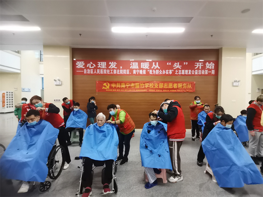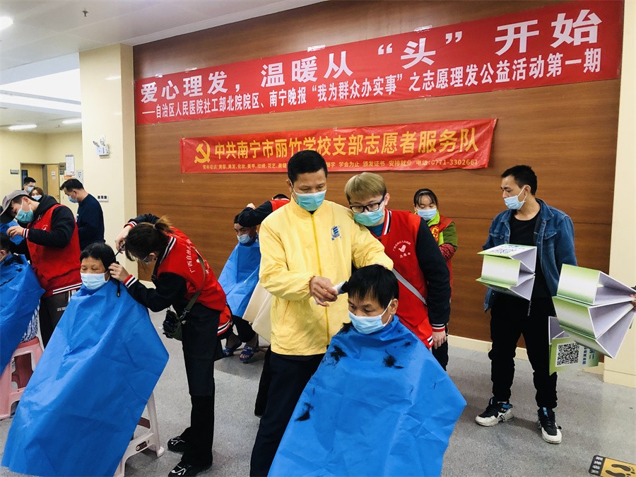 愛心理發(fā)進(jìn)醫(yī)院、南寧美發(fā)學(xué)校志愿理發(fā)活動(dòng):12月3日,對(duì)于一些長(zhǎng)期待在醫(yī)院的患者和家屬而言,不能隨意外出,久而久之理發(fā)成為了“頭”等大事。知道這樣的情況后,中共麗竹學(xué)校學(xué)校支部志愿者服務(wù)隊(duì)主動(dòng)申請(qǐng)參加由南寧晚報(bào)“愛幫之家”聯(lián)合自治區(qū)人民醫(yī)院北院共同舉辦的---愛心理發(fā),溫暖從“頭”開始志愿公益理發(fā)活動(dòng),發(fā)揮專業(yè)特長(zhǎng),為有需要的人提供綿薄之力。